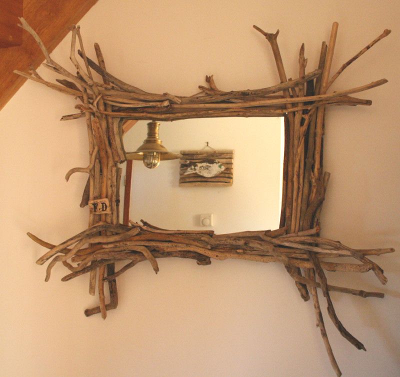 Ветки в интерьере могут найти свое место в качестве комплектующих оригинальной мебели, ножек, подставок, держателей или рамок к зеркалу.