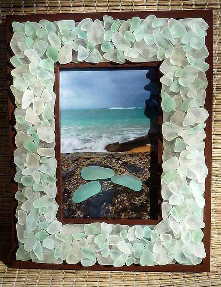 Таким же образом можно сделать фоторамку из ракушек. Ракушки предварительно необходимо прокипятить, после приклеивания на рамку — вскрыть лаком.