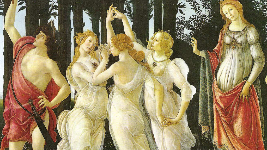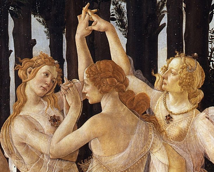 На всех трех картинах изображены мифологические сцены греческой богини Венеры. Когда мы смотрим на изображенные фигуры, мы замечаем больше символизма и акцента на изображенной красоте, а не на реализме. Это видно по кажущимся вытянутым конечностям фигур, например, тело Венеры в Рождение Венеры . Кроме того, тело Венеры стоит на краю раковины, в ее позе оно кажется почти таким же легким, как перышко, что еще больше указывает на отсутствие реализма, но на более символическую красоту.