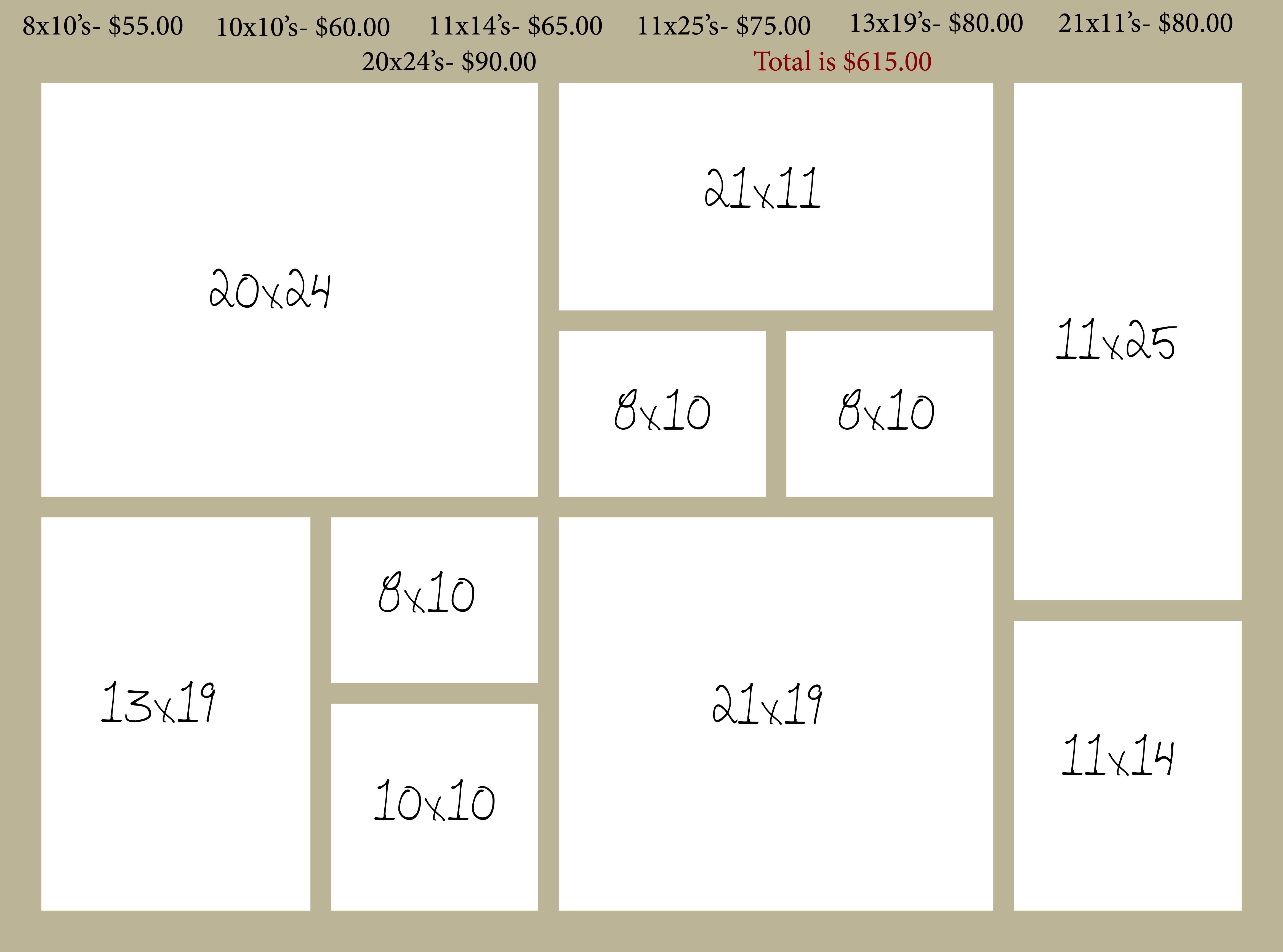 Имейте в виду, что те же принципы, которые применяются к отдельному произведению, также применимы к группировке работ. Если вы группируете коллекцию произведений искусства, расстояние между частями зависит от размера пространства, на котором они будут развешиваться. Если у вас большая стена, расстояние между элементами, которые вы группируете, должно быть не более четырех-шести дюймов. Если вы работаете с меньшей стеной, увеличьте расстояние до двух-четырех дюймов. Если вы посмотрите на части слева от меня, то увидите, что я фактически разделил эти части на шесть дюймов.Это дает каждому передышку, но в то же время делает их одной сплоченной единицей. Когда вы группируете работу, вы хотите думать об общей группировке как о едином размере и использовать метод измерения, описанный выше, чтобы выяснить, где находится ваша средняя точка, и отработать эту точку для своих расчетов. Возможно, вам будет полезно разложить все части в группе на плоской поверхности и выработать интервалы, прежде чем выполнять измерения на стене.