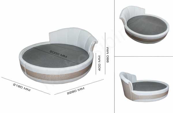 - Круглые и вытянутые овальные. Лечь можно под разным удобным углом, очень комфортно. Но захватывает подобная модель, к сожалению, слишком много пространства. Часто круглые модели идут с мягкой обивкой и прикроватными тумбочками в комплекте. Диаметр места начинается с 200 см и больше, над полом высота – 50 см.