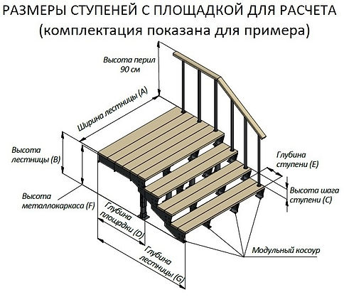Остальное можно высчитать, учитывая материал (конструктивный и отделочный), градус наклона марша, зависящий от уровня порога двери.
