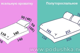 Ведь некоторые модели, хоть и являются полуторными, рассчитаны на 1-го человека, и, следовательно, простынь в данном случае, будет наименьшей. Размеры односпального матраса можно найти здесь. Также обратите внимание на стандартные размеры матрасов для детей. - Размеры подушек и одеяла. Эти показатели зависят исключительно от личных предпочтений хозяина, поскольку некоторые люди обожают спать на больших подушках с большими двуспальными одеялами, следовательно, для таких постелей понадобятся большие размеры наволочек и пододеяльников. Но можно обойтись и одеялом полуторного размера. Конечно, при выборе белья очень многие люди обращают внимание на рисунок и расцветку, однако специалисты рекомендуют выбирать только то бельё, которое является однотонным и желательно светлым, поскольку ткань, используемая для его изготовления, является более качественной. Также смотрите, какие бывают размеры детского одеяла в кроватку.