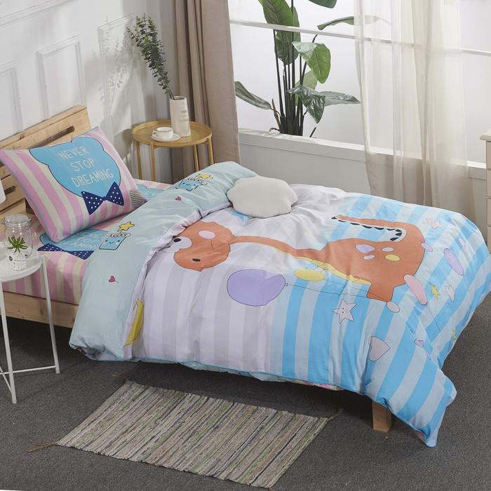 Детские («Ясли», «Для новорожденных») комплекты имеют отличное от прочих соотношение размера спального места (60х110, 60/65х120 см) к размеру простыни (100х120, 120х170). Объясняется оно просто: чем дальше под матрас уходят свободные края простыни, тем лучше она зафиксирована и тем меньше у ребенка шансов ее «свезти». Иногда в качестве дополнительной опции с детским постельным бельем идут мягкие бортики и/или палантин.