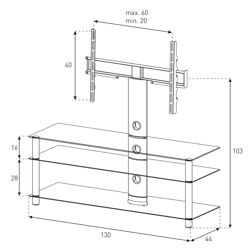 В некоторых моделях могут присутствовать полки. При необходимости легко передвигается на другое место. - Стойка. В стойку вмонтирован специальный кронштейн для закрепления телевизора. Это обезопасит технику от падения. Также с помощью кронштейна можно регулировать высоту и угол положения экрана. В стойке есть специальный канал для проводов, что тоже очень удобно.