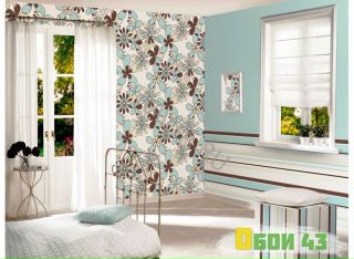 - крупные цветы на две трети стены, однотонные на одну треть.