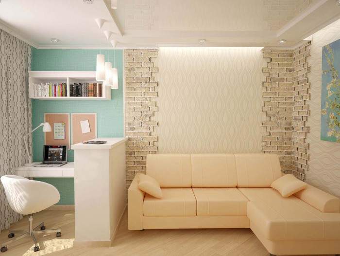 Для разделения помещения можно применять, как и различные шторы, так и специальные ширмы. Также желательно отвести пространство, которое будет предназначаться только для ребенка. Данную зону стоит с помощью обоев с изображением любимых сказочных героев. Здесь отлично подойдет мебель, способная раскладываться и складываться.
