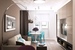 Спальню отделяют от гостиной прихожей стеклянные перегородки. За ними — блэкаут-шторы (полное затемнение даже днем). Перегородки доходят до половины стены, и когда шторы убраны, пространство смотрится единым.