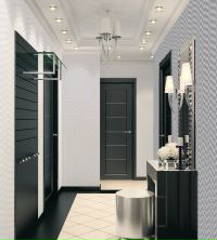 Темные двери — стандартный выбор для многих. Это во-первых практично, на ней хуже заметны царапины и грязь, во-вторых, стильно. Но именно темные двери могут испортить ощущение легкости и нежности прихожей, либо добавить мрачности и грубости.