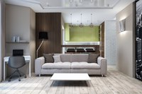 - Помещения без лоджий и балконов чаще всего делятся на две зоны: кухня и зона отдыха. Если у вас есть дополнительное пространство, то его можно присоединить к основному, либо сделать полноценный кабинет.