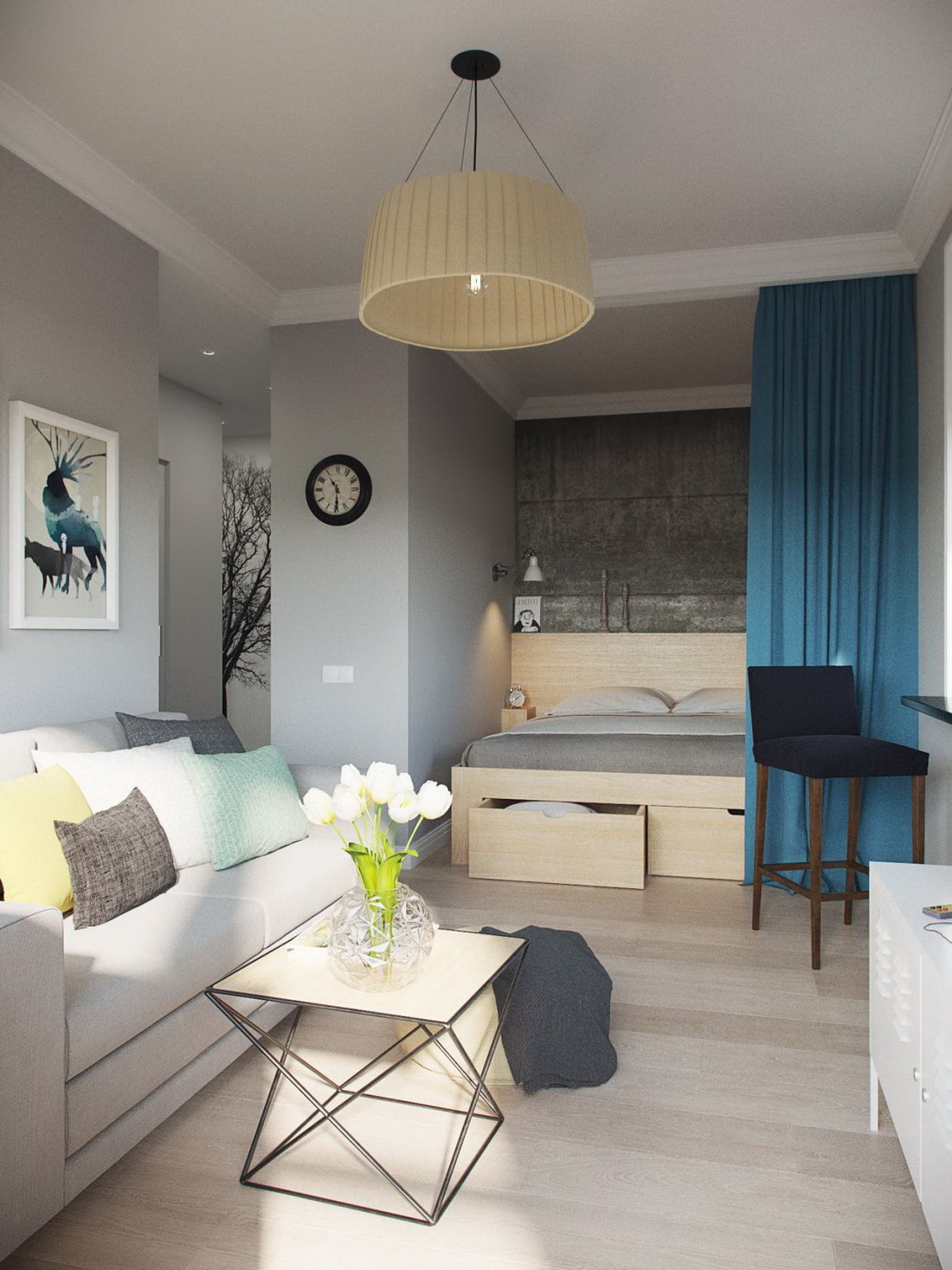 Чтобы однокомнатная квартира выглядела просторной и одновременно уютной, рекомендуется после ремонта:
