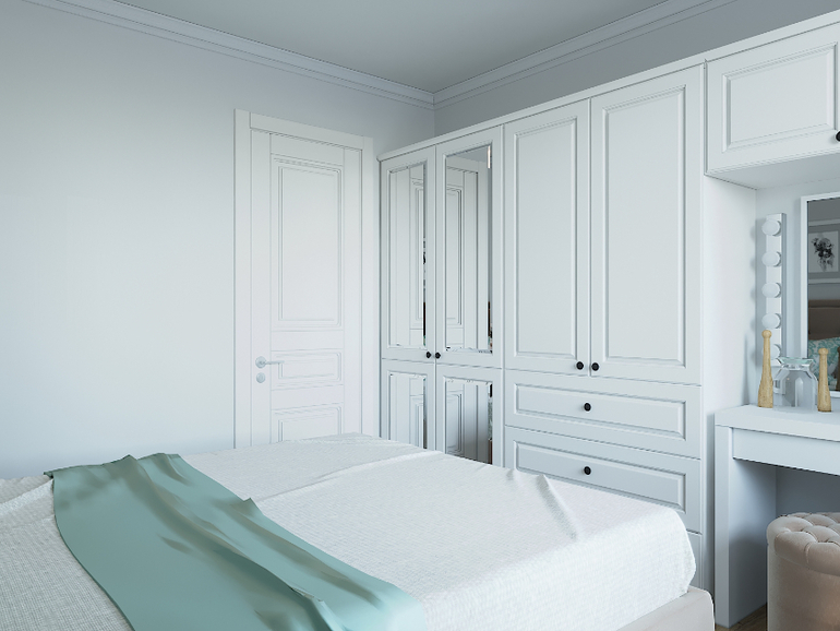 Очень часто в таких квартирах есть кладовки, которые переделывают под гардеробные. Самый популярный вариант обустройства «трешки»: