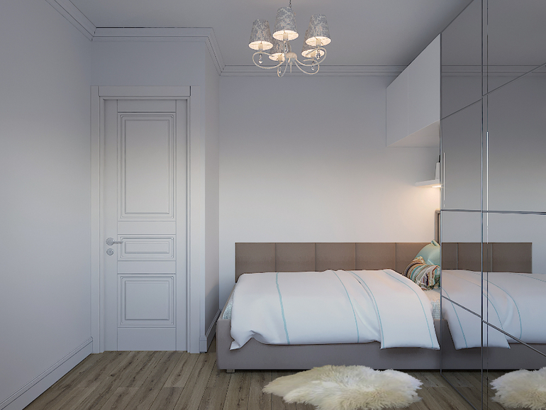 Белый простой потолок – лучшее решение. Кроме того, лучше отказаться от стилей, которые требуют массивной мебели, обилия декора. Оптимальные вариации – современные направления. Минимализм, скандинавский стиль, хай-тек подойдут идеально.