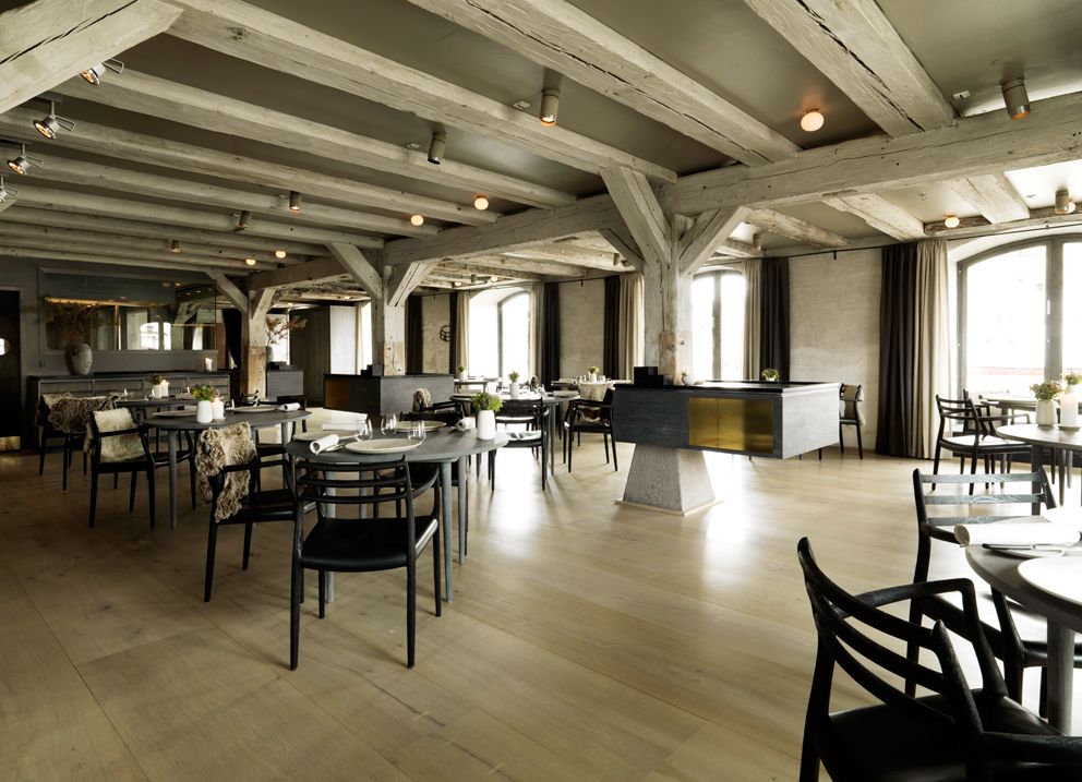 Профессиональное освещение создано Майклом Анкером и австрийским брендом XAL. Каждый прибор может быть отрегулирован так, чтобы дать теплый, похожий на отсвет зимнего камина, или более прохладный для лета оттенок света — пища должна восприниматься как можно точнее, а для этого нужен высокий индекс цветопередачи.