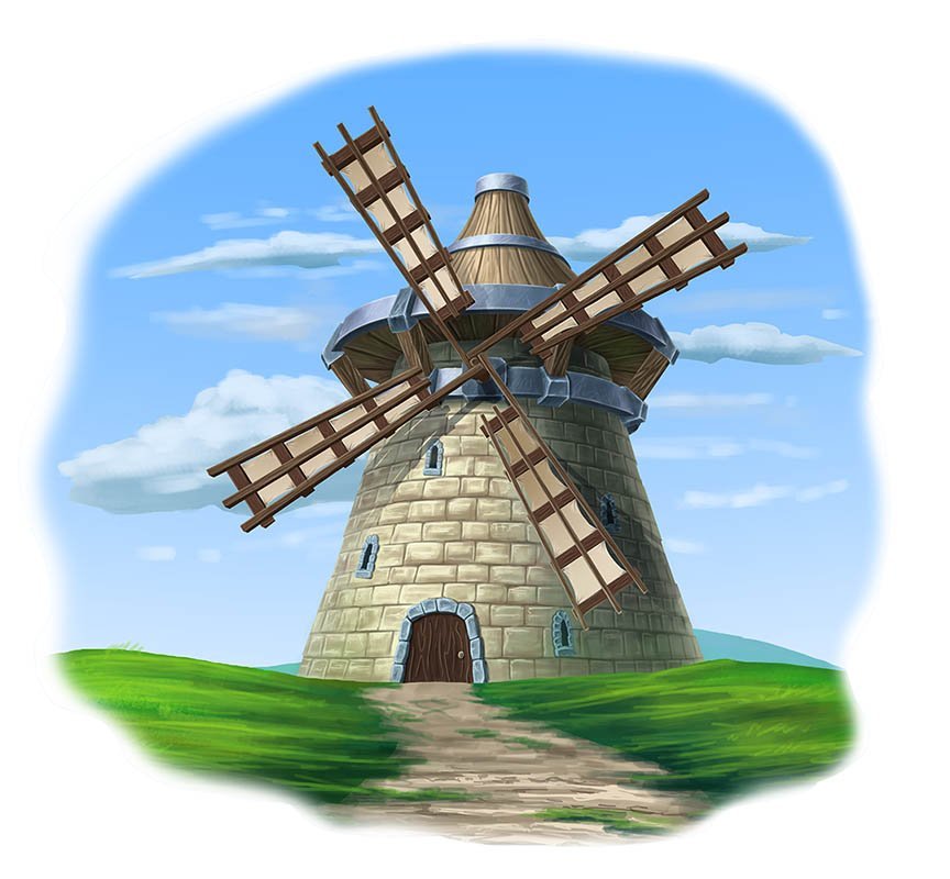 После того, как вы определились со стилем и количеством ветряных мельниц на этом изображении, вы можете добавить фон.