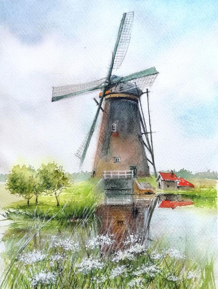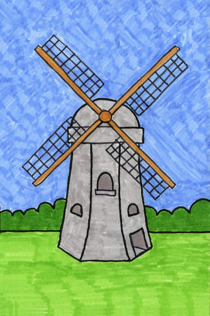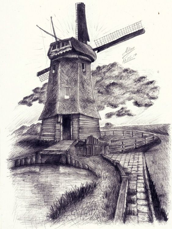 Рисунок ветряной мельницы — Как нарисовать ветряную мельницу шаг за шагом