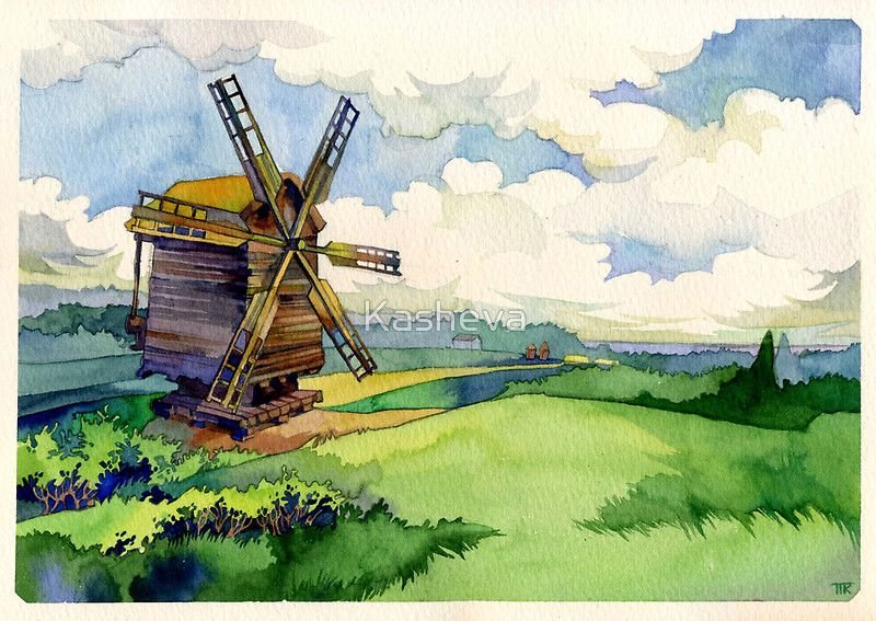Этот рисунок ветряной мельницы, который мы создали, выполнен в очень старомодном стиле.