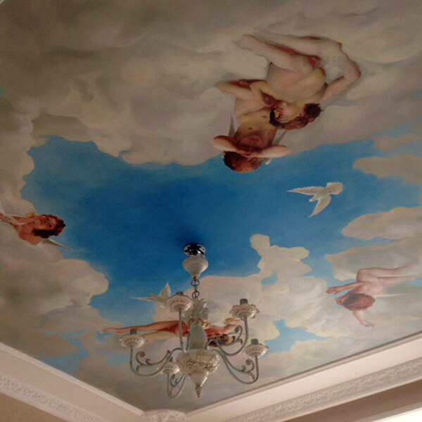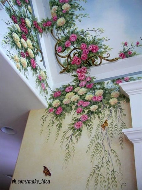 В отличие от росписи потолка, описанной выше, потолок еще можно украсить объемной росписью, именуемой роспись — обманка. Только в этот раз нужно прибегнуть к помощи художников, владеющих искусством нанесения трехмерного изображения.