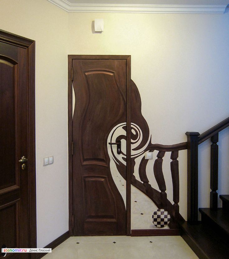 Безусловно, для этого нужны определенные умения или талант. Если сомневаетесь, что у вас получится — наймите художника, который с радостью распишет вашу входную дверь по вашим рисункам или эскизам. Для особо требовательных людей можно даже попробовать перенести целые постеры на входную дверь — следует только подобрать изображение.