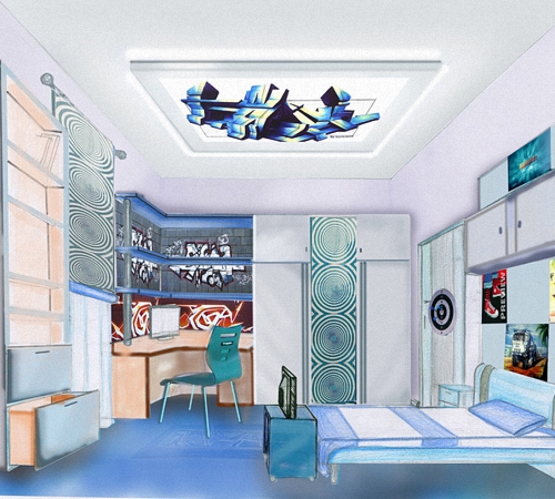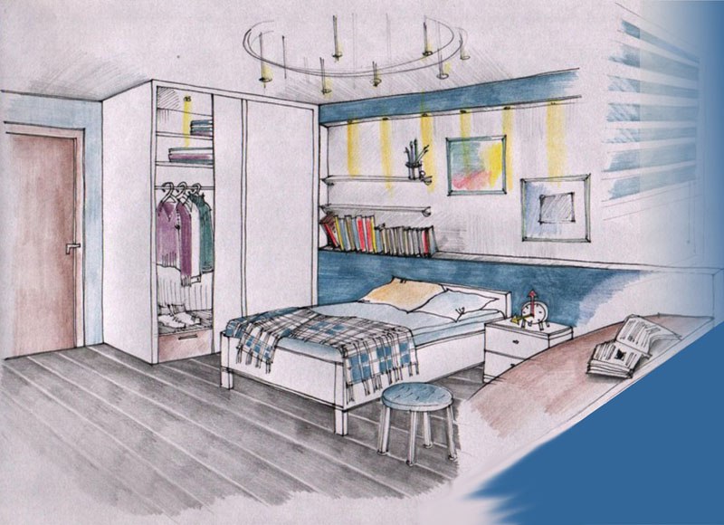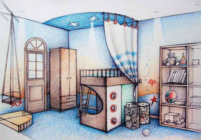 В этом случае придут на помощь рисунки детской комнаты. Графические эскизы могут содержать не только схематичное изображение интерьера, на них можно также отразить его соответствие реальным параметрам.