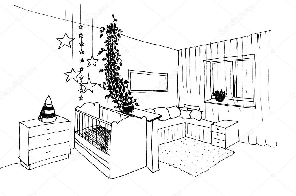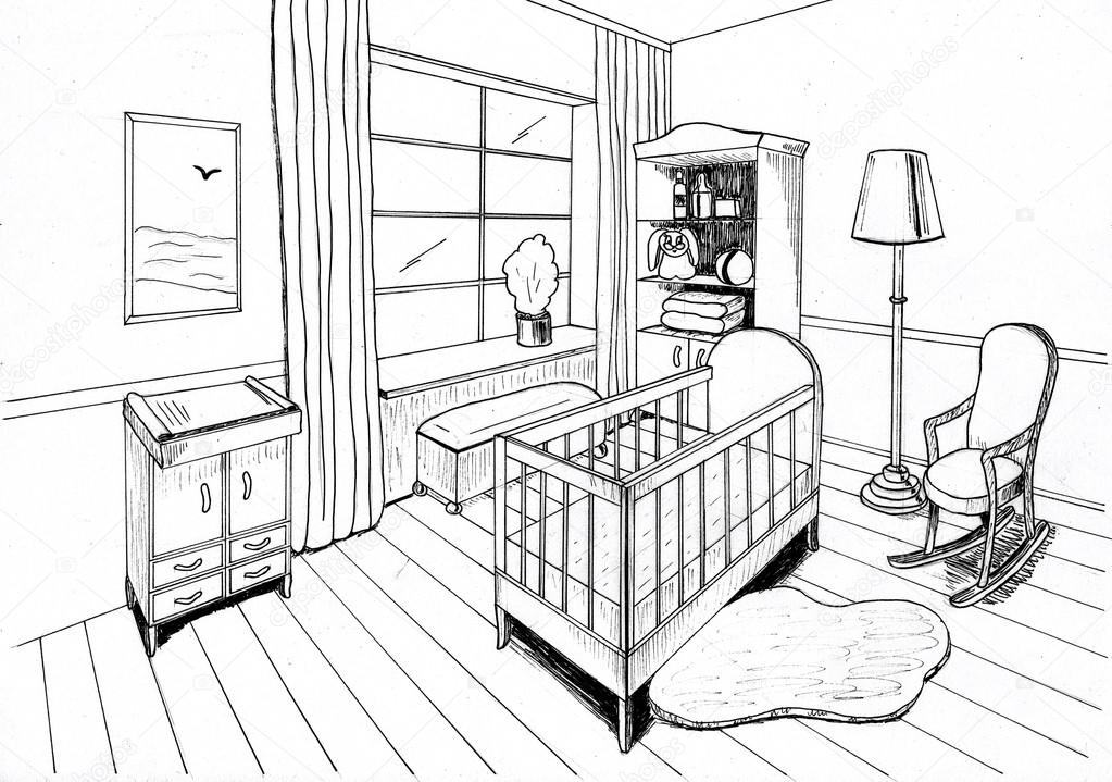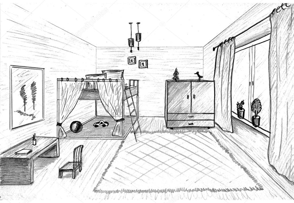 Эскизы детских комнат карандашом