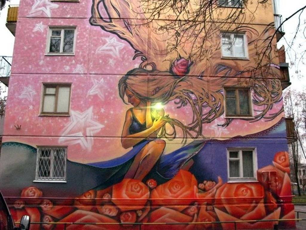 Рисунки на стенах домов в современном мире уже давно не вызывают удивления или неприятия со стороны окружающих. Они стали особым видом искусства, с помощью которого художник может передать свою мысль, рассказать людям историю, либо просто поднять настроение, а также красиво оформить окружающий мир. Дома с такими росписями часто можно встретить на улицах Москвы, а также других городов России, Украины.