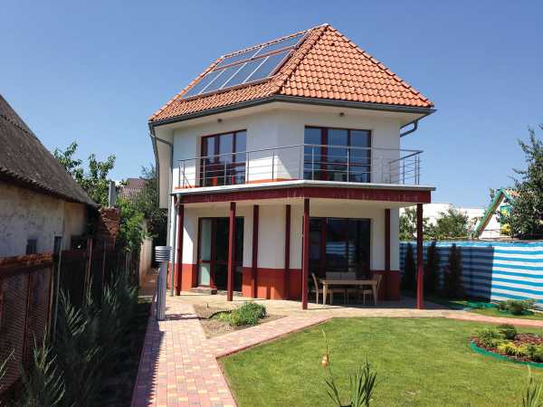 Например, этот современный частный дом гармонично сочетает присутствие классического, среднеевропейского и немецкого стиля фахверк. На это указывает не только конструкция здания, но способ отделки. Для придания уже готовому зданию стиля фахверк достаточно применить в отделке поверхностей темные деревянные балки, размещенные на светлом фоне. Этот вид обработки поверхностей достаточно экономичен и быстр в исполнении, но нужно быть готовым к тому, что каждые 15-17 лет балки нужно будет менять.