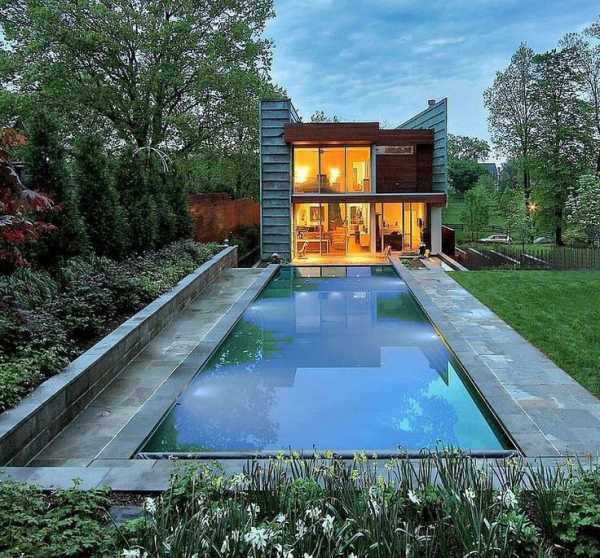 Загородный дом с бассейном — это не только красиво, но и практично. Место для водоема найдется даже на небольшом участке, главное — правильно зонировать пространство.