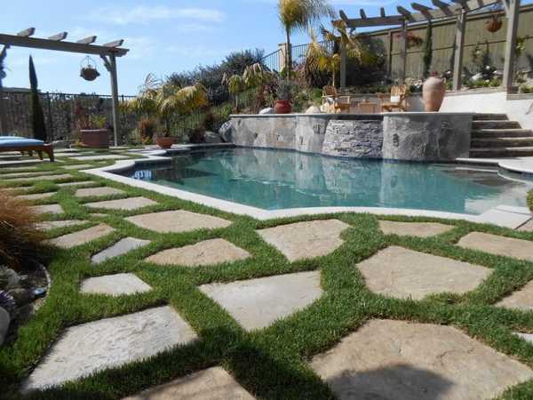 Если у вас на участке имеются перепады высот, то в таком случае вполне уместно будет обыграть их ярусами и ступенями, декорированными мозаикой или камнем.