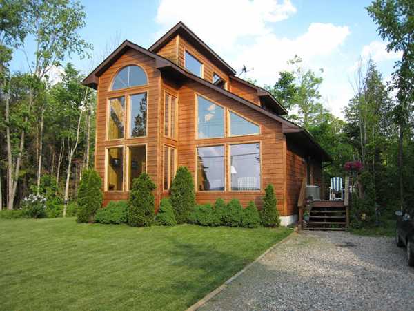 Дерево — оптимальный выбор для загородного дома. Такие фасады не требуют дополнительного декора и гармонично сочетаются с различными кровельными покрытиями: профнастилом, ондулином, гибкой черепицей (ондувилла и аналоги).