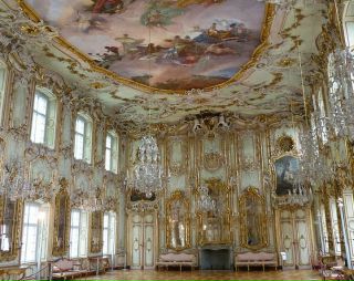 Екатерина I, императрица России с 1725 года до своей смерти в 1727 году, была одной из великих женщин-правительниц 18 века. Дворец, названный в ее честь под Санкт-Петербургом, был заложен в 1717 году ее мужем Петром Великим. К 1756 году он был расширен в размерах и славе, чтобы соперничать с Версалем во Франции. Говорят, что Екатерина Великая, императрица России с 1762 по 1796 год, категорически не одобряла экстравагантность рококо.