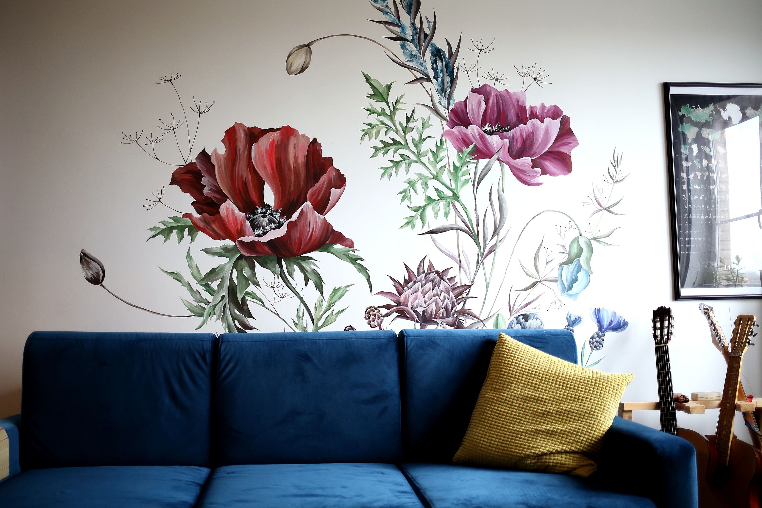 Процесс создания эксклюзивной росписи завершен, можно приглашать друзей полюбоваться настенной живописью, выполненной своими руками.