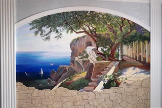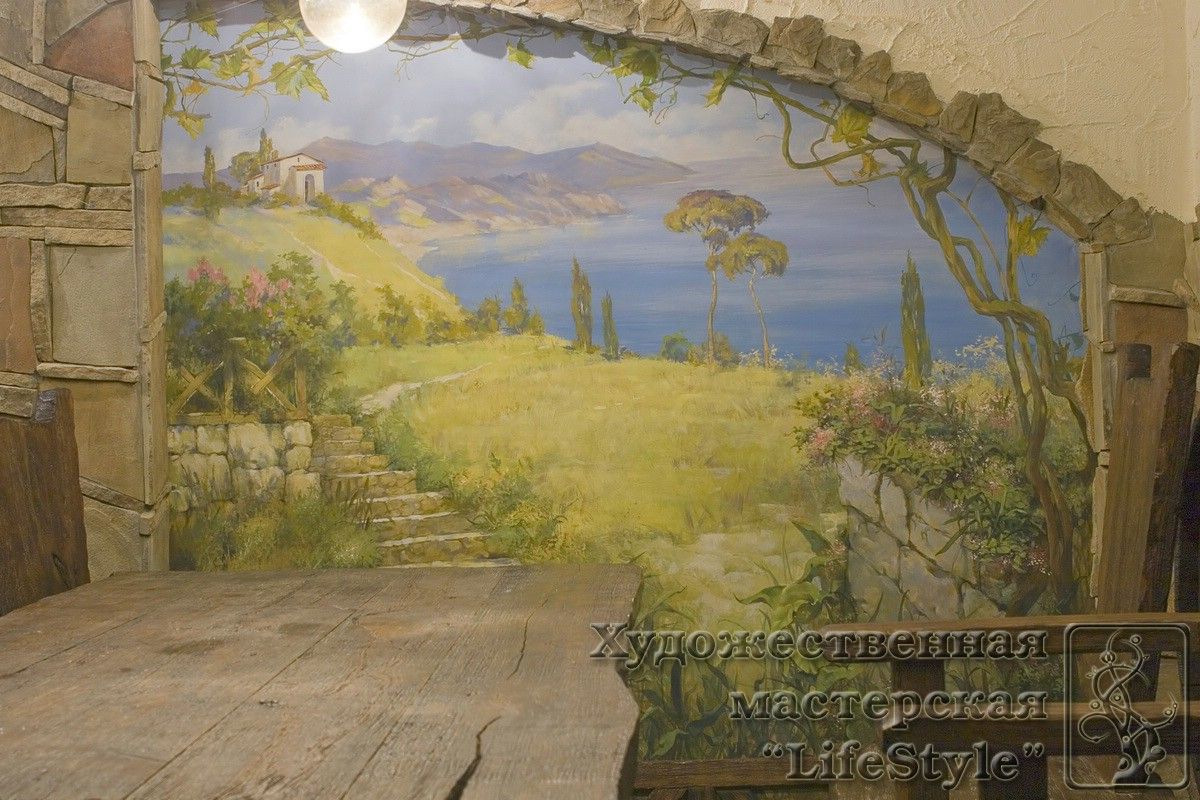 Π ΠΎΡΠΏΠΈΡΡ ΡΡΠ΅Π½Ρ ΠΈΠΌΠΈΡΠΈΡΡΡΡΠ°Ρ ΠΊΠ°ΠΌΠ΅Π½Π½ΡΠ΅ ΠΏΠ»ΠΈΡΡ ΠΎΠ²ΠΈΡΡΠ΅ Π»ΠΎΠ·Π°ΠΌΠΈ Π΄ΠΈΠΊΠΎΠ³ΠΎ Π²ΠΈΠ½ΠΎΠ³ΡΠ°Π΄Π° ΠΎΠΆΠΈΠ²Π»ΡΠ΅Ρ ΠΏΡΡΡΡΡ ΡΡΠ΅Π½Ρ, Π² ΡΠΎ ΠΆΠ΅ Π²ΡΠ΅ΠΌΡ ΠΊΠΎΠ»ΠΎΡΠΈΡΡΠΈΡΠ΅ΡΠΊΠ°Ρ Π³Π°ΠΌΠΌΠ° Π²Π·ΡΡΠ°Ρ ΠΈΠ· ΡΠΆΠ΅ ΠΈΠΌΠ΅ΡΡΠ΅ΠΉΡΡ ΡΠ²Π΅ΡΠΎΠ²ΠΎΠΉ Π³Π°ΠΌΠΌΡ ΡΠΎΡΠΏΠΈΡΠ΅ΠΉ ΠΈ Π΄Π΅ΠΊΠΎΡΠ° Π½Π΅ Π²ΡΠ±ΠΈΠ²Π°Π΅ΡΡΡ ΠΈΠ· ΠΈΠ½ΡΠ΅ΡΡΠ΅ΡΠ°, Π° Π½Π°ΠΎΠ±ΠΎΡΠΎΡ, Π²Π½ΠΎΡΠΈΡ Β«ΠΈΠ·ΡΠΌΠΈΠ½ΠΊΡΒ» : Π΄ΠΎΡΡΠ°ΡΠΎΡΠ½ΠΎ ΠΏΡΠΎΡΡΠ°Ρ ΠΊΠΎΠΌΠΏΠΎΠ·ΠΈΡΠΈΡ ΠΈΠ· ΠΌΠΎΡΠΈΠ²ΠΎΠ² ΠΏΡΠΈΡΠΎΠ΄Ρ Ρ Π½Π΅Π±ΠΎΠ»ΡΡΠΎΠΉ Π³Π»ΡΠ±ΠΈΠ½ΠΎΠΉ ΠΏΡΠΎΡΡΡΠ°Π½ΡΡΠ²Π° ΠΏΡΠΎΡΠΈΡΡΠ²Π°Π΅ΡΡΡ ΡΠΊΠΎΡΠ΅Π΅ ΠΊΠ°ΠΊ Π΄Π΅ΠΊΠΎΡΠ°ΡΠΈΠ²Π½ΡΠΉ Β ΠΏΠ»ΠΎΡΠΊΠΎΡΡΠ½ΠΎΠΉ ΠΎΡΠ½Π°ΠΌΠ΅Π½Ρ.
