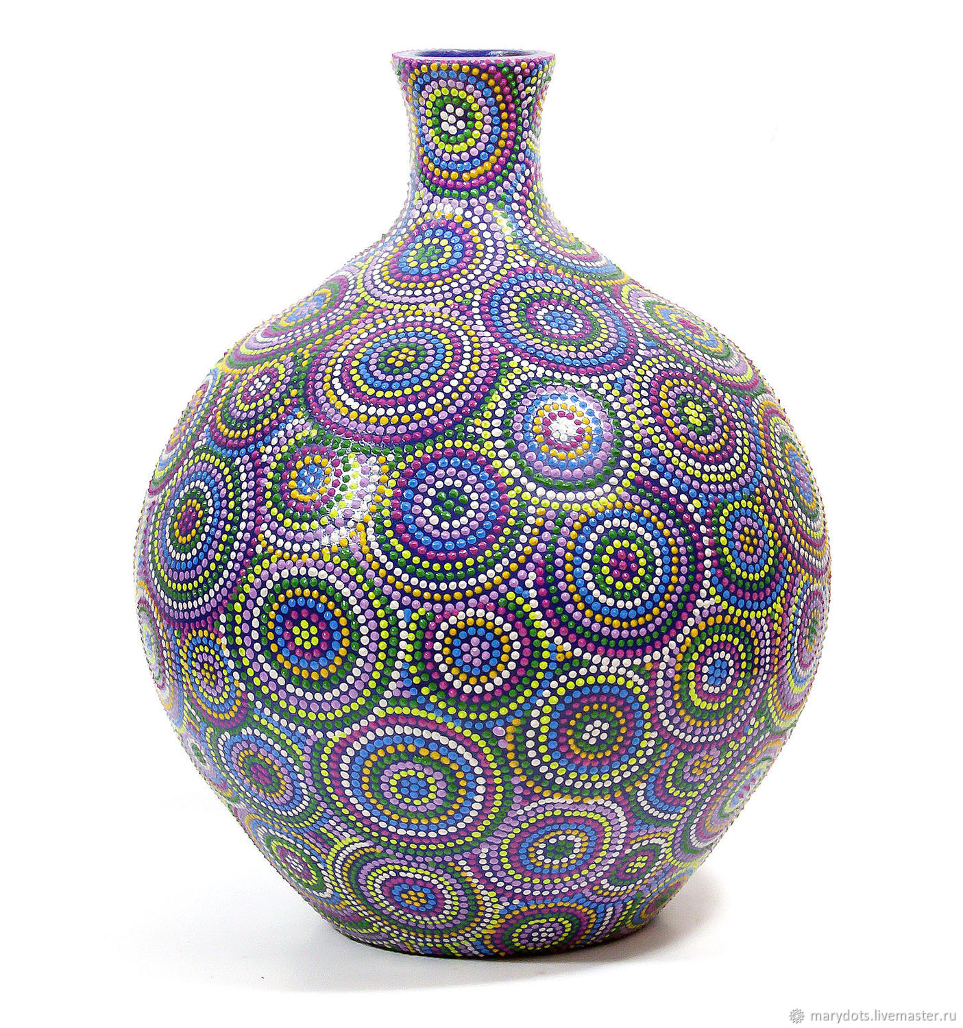 Если вы не стремитесь искать легкие пути и хотите украсить вазу достаточно замысловатым узором, можно заняться освоением техники точечной росписи. Другое ее название – пике.