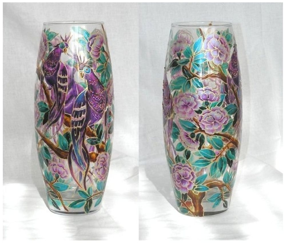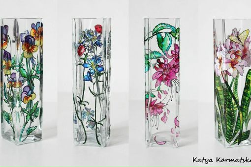 Стеклянные или керамические вазы, расписанные вручную акриловыми красками, станут великолепным подарком на свадьбу. Будут они и особым предметом декора, который станет украшением вашего дома. Роспись по стеклу может быть сложной или же очень простой.