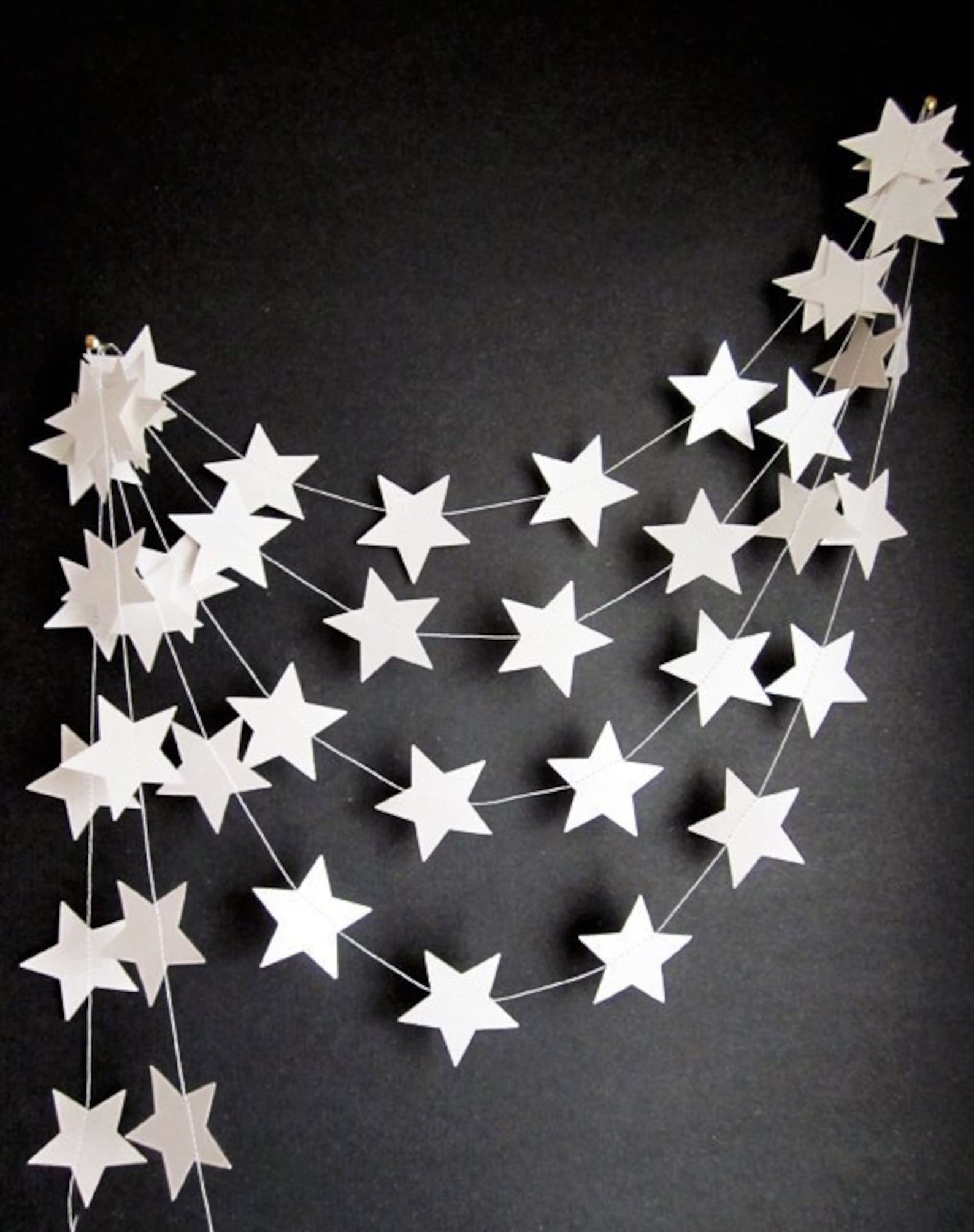 А из бумаги золотистого или серебряного цвета получатся замечательные звёзды для гирлянды. Форму можно придать любую. Нужны лишь ножницы и полёт фантазии. Впрочем, золотистые звезды — просто и банально. Для тех, кто хочет действительное необычную гирлянду, стоит попробовать объемные бумажные фонарики.