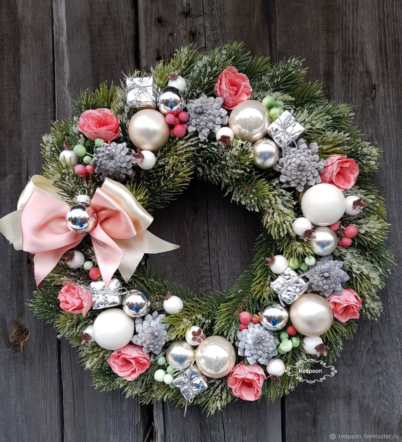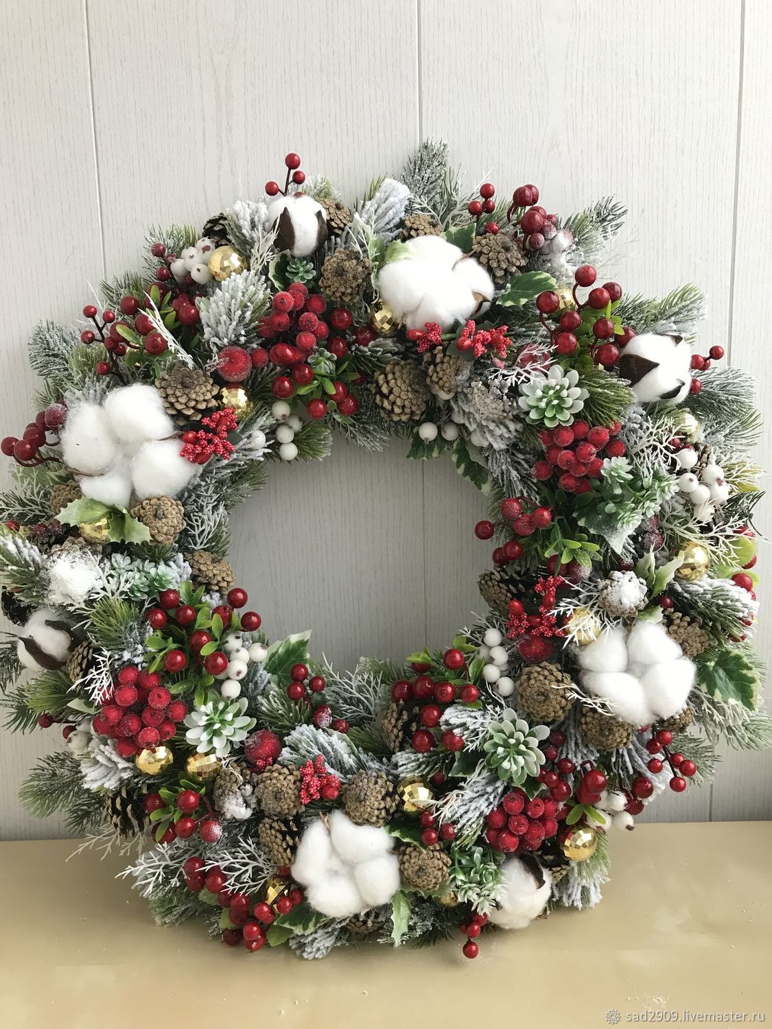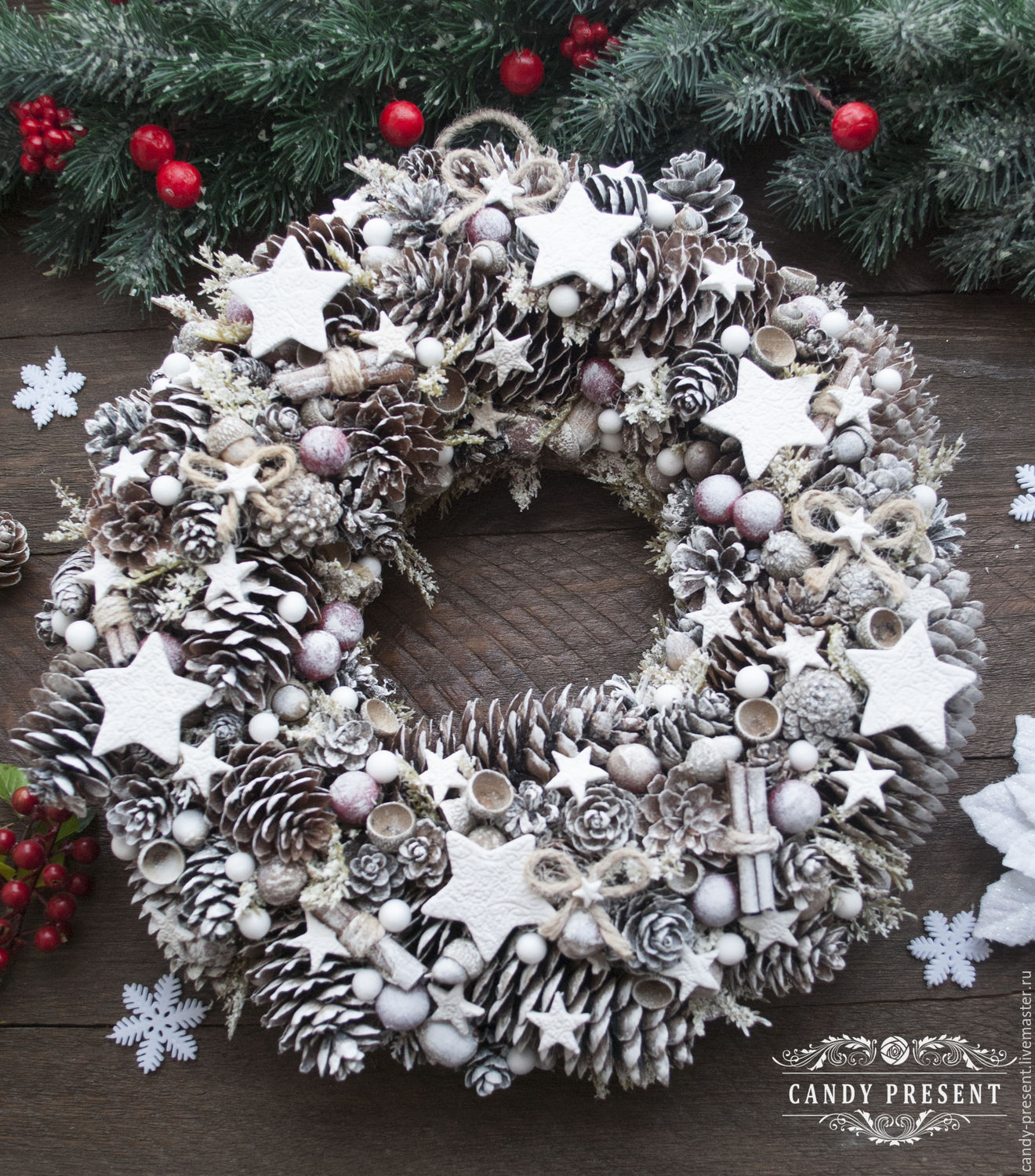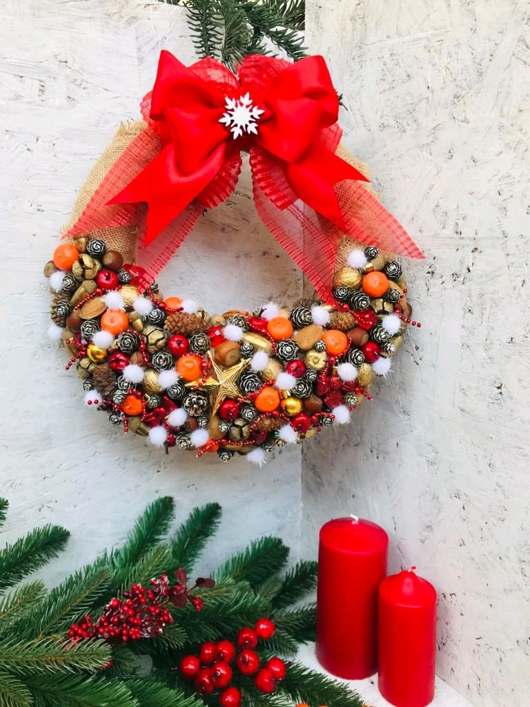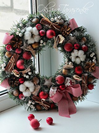 Красно-белый рождественский венок своими руками