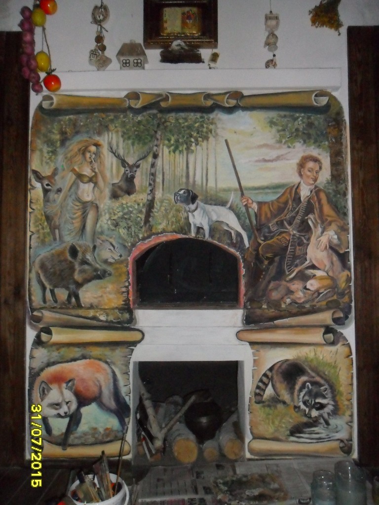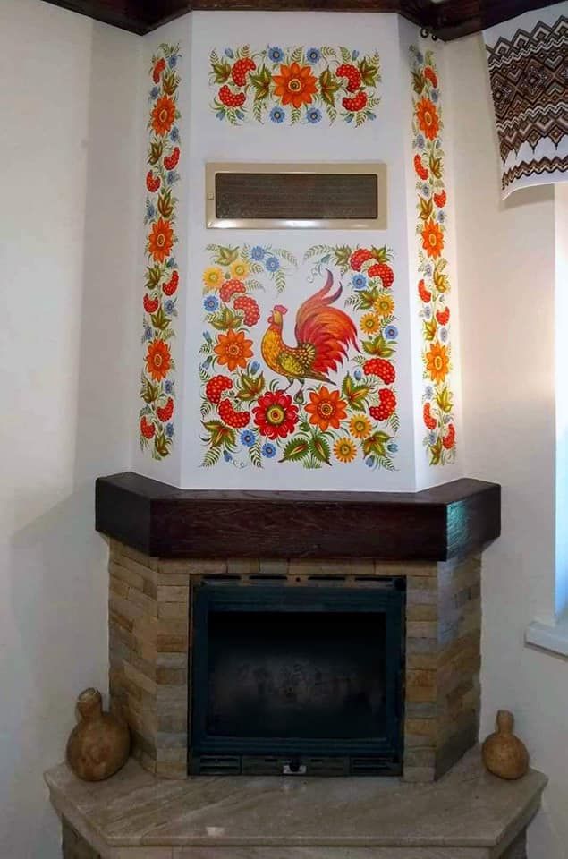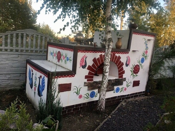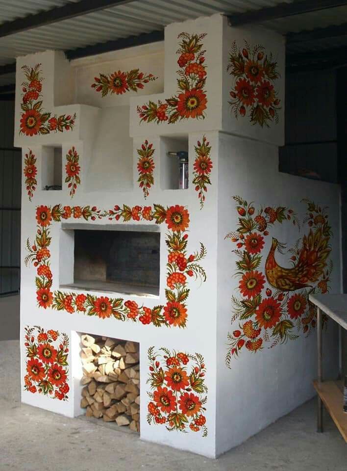 Для дачной печки это бюджетные, доступные и простые в применении средства, а последующая окраска или роспись печки — по желанию владельца — может превратить печь в украшение дачного домика или даже загородного дома. Учитывая то, что русская печь занимает обычно центр помещения и немалую его функциональную зону, а также является «сердцем» дома и гвоздем интерьера — красивая роспись очень актуальна.