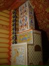 Затем румпы заполняют глиняно-щебеночным раствором и прикрепляют к поверхности печи. В завершении выполняют затирку швов гипсом. Благодаря отделке изразцами теплоемкость печки увеличивается. Печь, украшенная изразцами, показана на Рис. 2, где представлена фотография превосходного изделия, находящегося в музее-заповеднике Коломенское. Конечно, такая печь является шедевром искусства, но можно попробовать сделать что-либо похожее своими руками.