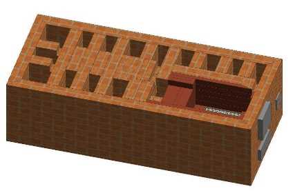 Тридцать третий и последующие ряды до потолка предполагают кладку канала трубы.
