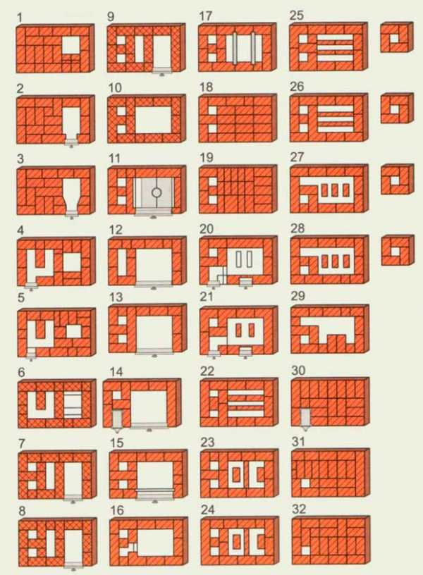 Рисунок 3. Порядовка печной кладкиПри кладке печи с комфортной лежанкой необходимо руководствоваться порядовкой. Неспециалисту будет непросто разобраться в дебрях схемы, поэтому каждый ряд проиллюстрирован отдельно.