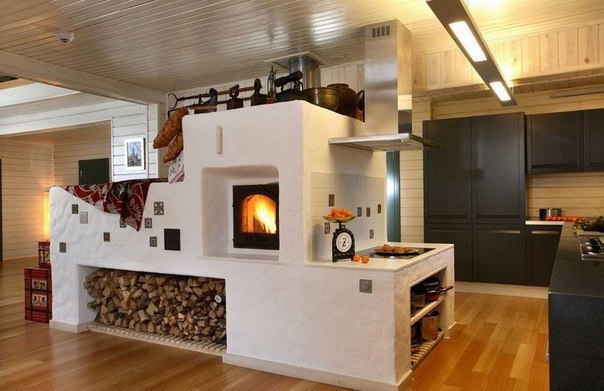 Даже в таком, казалось бы, современном стиле как модерн или хай-тек, печка может идеально вписаться в интерьер