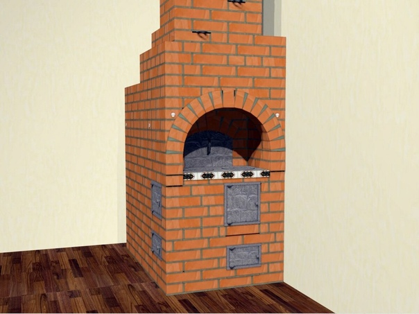 Печь кладется из кирпича, не занимает много места, при этом отличается высоким коэффициентом полезного действия.