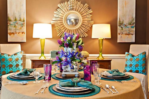 ru- Столовая ‒ цвета в комнату подбираются в зависимости от пожеланий хозяина. Тем, кто хочет сбросить лишний вес, золотой комбинируют с фиолетовым и голубым цветом. Если у человека проблемы с аппетитом и пищеварением ‒ подойдут красный и зеленый. Для аристократических интерьеров лучшее сочетать золотой с белым, бежевым.