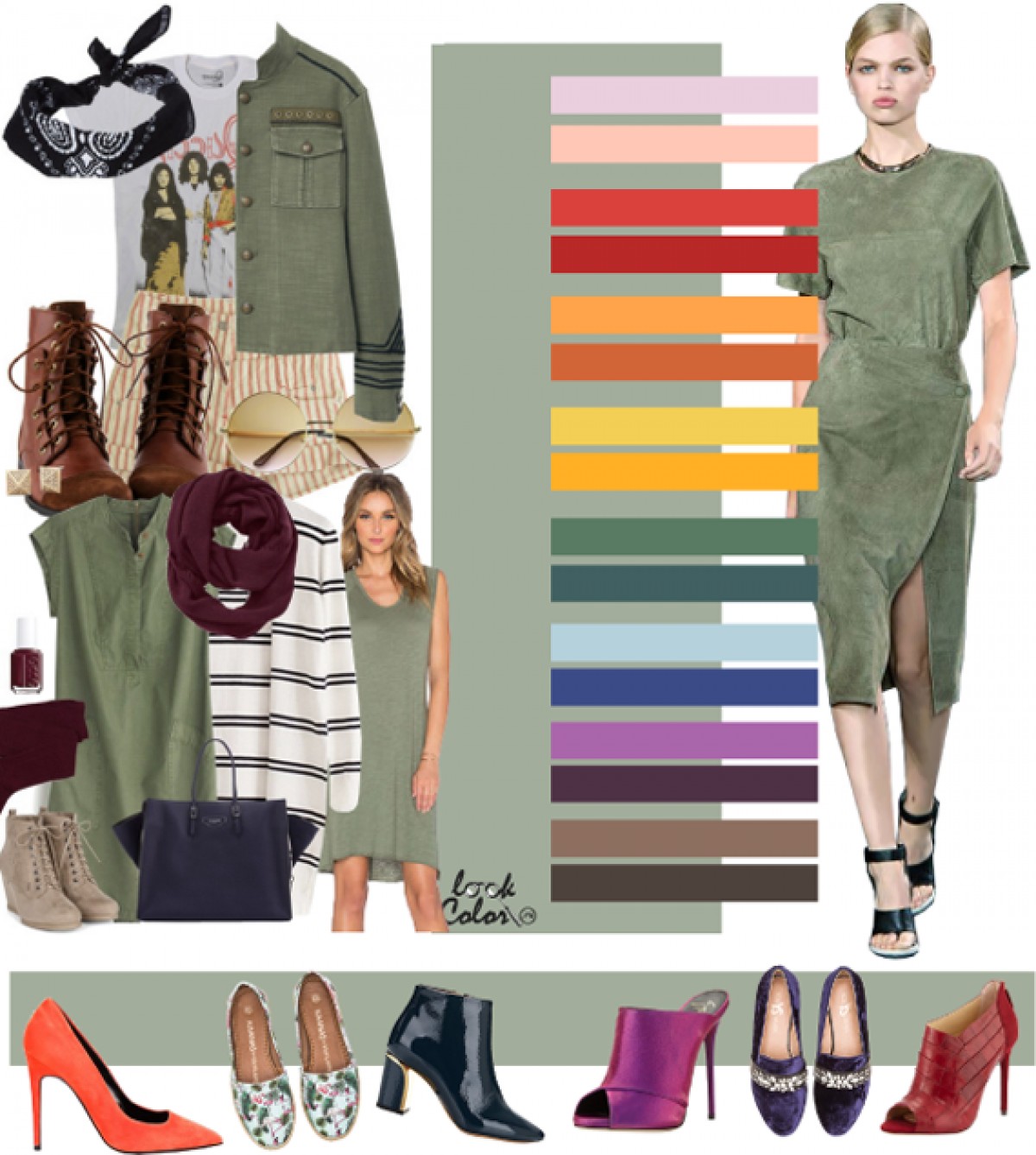 Сочетание оливкового цвета с другими цветами. Оливковый цвет в одежде