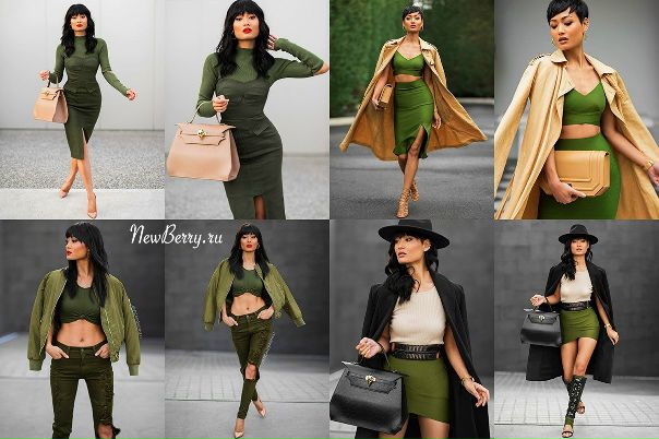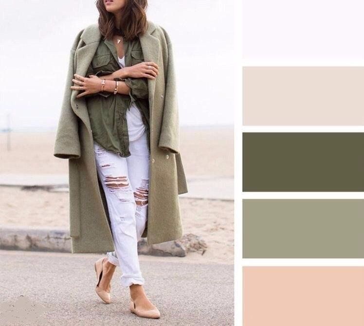 Существует несколько удачных сочетаний с оливковым цветом, которые сделают ваш облик неотразимым и запоминающимся: