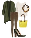 На работу вы можете надеть черные расклешенные брюки или штаны-дудочки с оливковой водолазкой. Добавьте яркий шарфик или бусы, и получится весьма сдержанный и интересный образ.