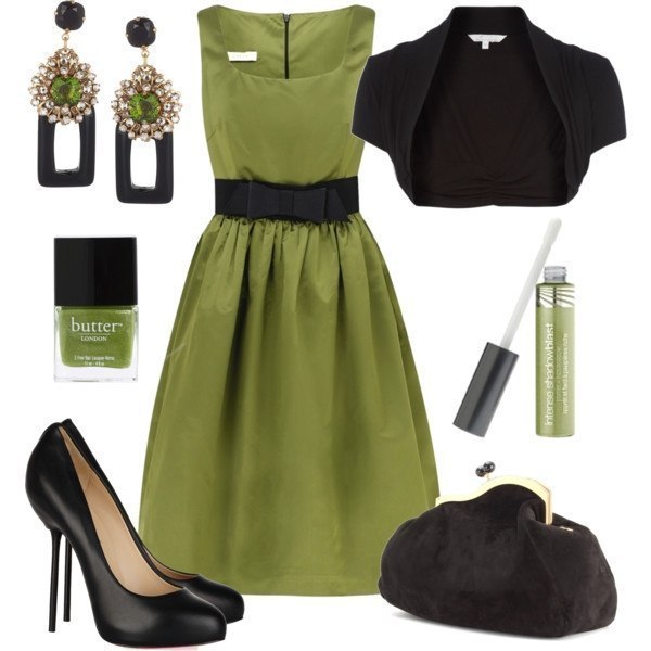 - Черный + оливковый = сдержанный стиль. Подойдет в тех случаях, когда вы не хотите привлекать к себе лишнего внимания.