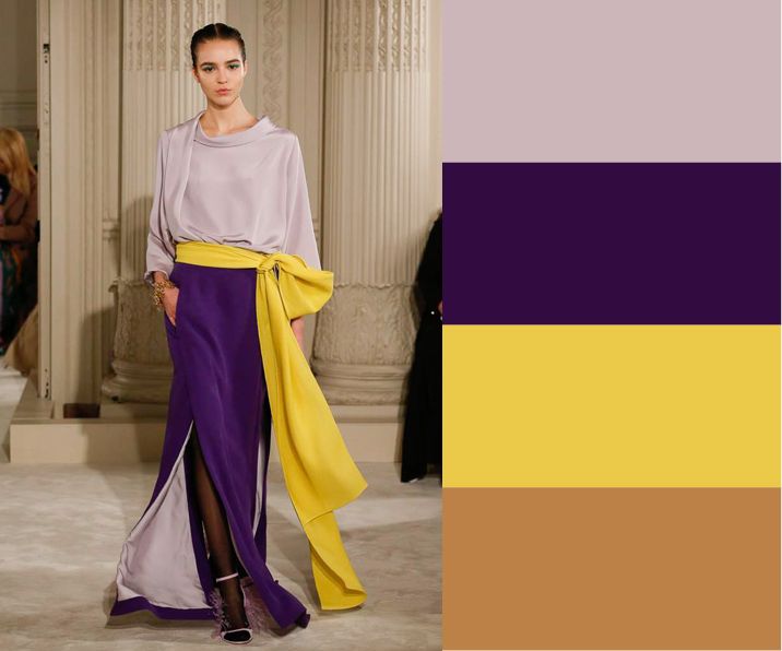 Такое сочетание приглянется тем, кто ценит яркость, неординарность и хочет подчеркнуть свою индивидуальность. Лучше всего, если в таком случае желтый цвет будет выражен только в миниатюрных деталях, а основным цветом всего наряда станет фиолетовый.