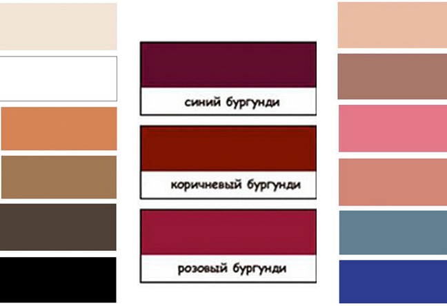- 2 Розово-бордовый цвет (светло-бордовый цвет) и сочетание с ним